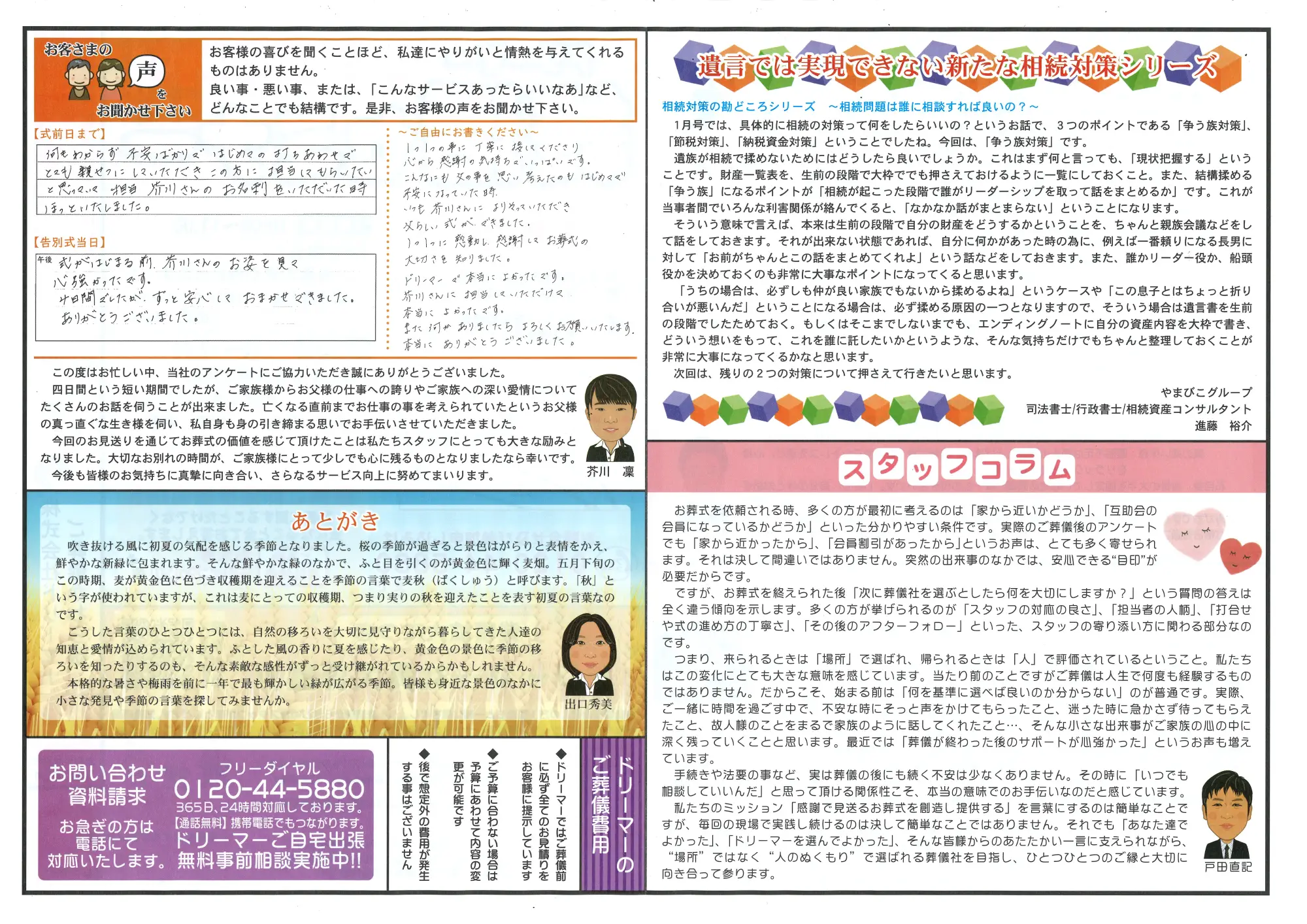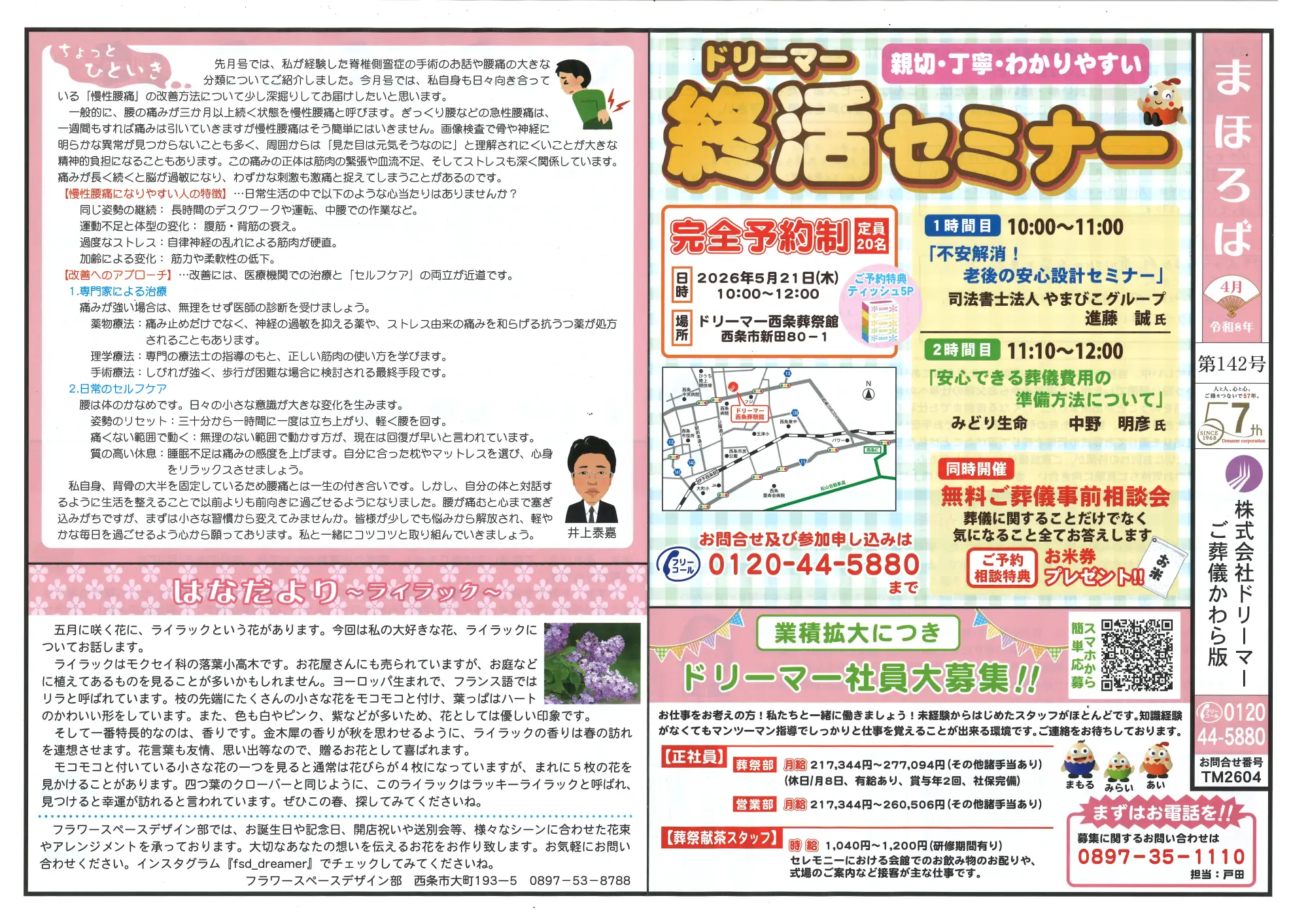 【葬儀かわら版】第142号を発行しました 葬儀かわら版第142号を発行しました。 新居浜市・西条市を中心にお葬儀や法要の知っておくと為になる豆知識や、葬祭スタッフの近況など色々な情報を掲載しておりますので是非ご覧ください。 前の記事へ